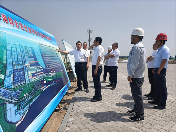 2023年5月15日下午,交發集團黨委書記、董事長劉俊德,黨委委員、副總經理安國棟一行到森旭港務有限公司液體化工碼頭項目施工現場調研指導。