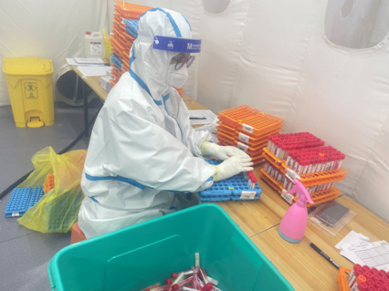一句句擲地有聲的“戰疫接龍”奏響了先鋒抗疫的最燃戰歌。大家身穿紅馬甲和防護服,協助醫護和社區人員投身到方艙誌願服務、封控值守、物資分發、核酸登記、物品購置、環境消毒等各項工作中去。