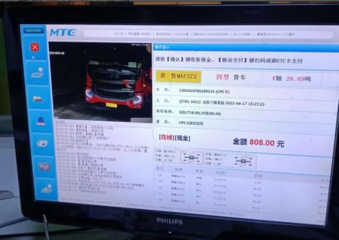 經刷卡顯示該車入口信息為山東蘭陵北站,應繳費808元。當班收費員提示司機繳費後,司機以運輸鮮活農產品為由要求免費通行。