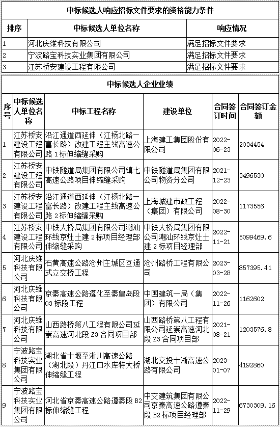 G18榮烏高速滄州段改擴建工程矽芯管、伸縮縫、橋梁支座采購二次招標(SSF2)