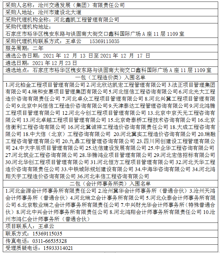 滄州交通發展(集團)有限責任公司審計機構遴選項目遴選結果公告