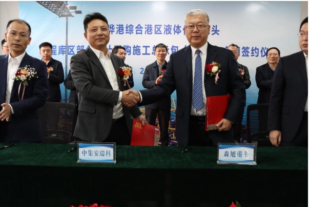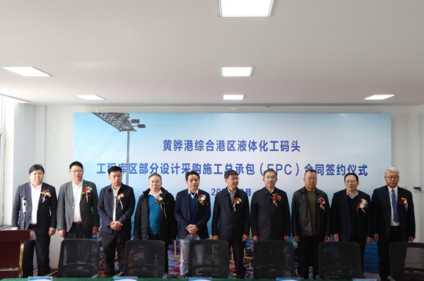 2月23日,滄州森旭港務有限公司與黃驊港綜合港區液體化工碼頭工程庫區部分設計施工總承包(EPC)中標單位(中集安瑞科工程科技有限公司、中國化學工程第十一建設有限公司、中建六局第一建設有限公司、中建安裝集團有限公司、中國建築股份有限公司)隆重舉行了黃驊港綜合港區液體化工碼頭工程庫區部分設計采購施工總承包(EPC)合同的簽約儀式。