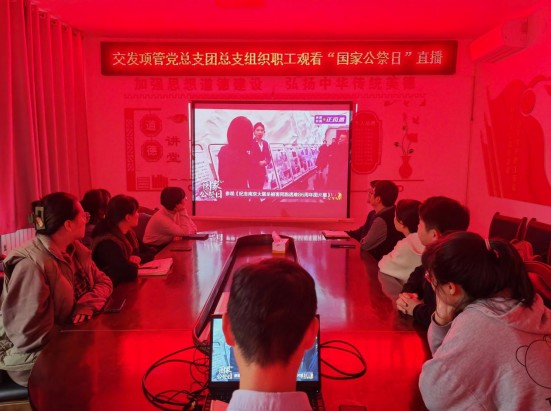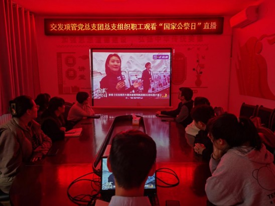 今日,交發項管黨總支、團總支組織機關在崗職工集體觀看“國家公祭日”直播,牢記侵略者罄竹難書的罪行,為南京大屠殺遇難同胞哀悼,傳遞曆史真相,播撒富強和平之種。