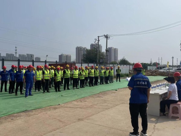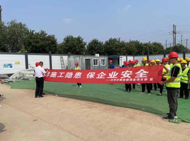 2022年8月是路橋公司第一個“安全生產月”。為進一步樹牢安全發展理念,提升全員安全意識和素質,提高整體安全生產管理水平,防範和遏製重大事故發生,8月4日上午,滄州路橋一分公司在解放路調直(長蘆大道-石港路)工程施工現場召開以“排施工隱患,保企業安全”為主題的 “安全生產月”活動啟動儀式,路橋公司副總經理孫竹立、安全部和一分公司相關負責人、現場施工人員參加本次活動。