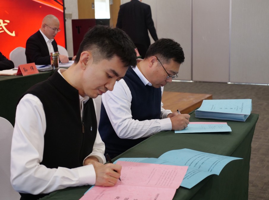 大會宣讀了《市場營銷獎勵辦法》,激勵員工積極參與市場拓展,提高公司市場競爭力。在建築子公司總經理、各公司部室及項目負責人就2023年工作進行述職後,總經理張鋒分別與其簽訂了年度業務目標責任狀及廉業、安全責任狀,明確責任和義務,保障公司穩健發展。