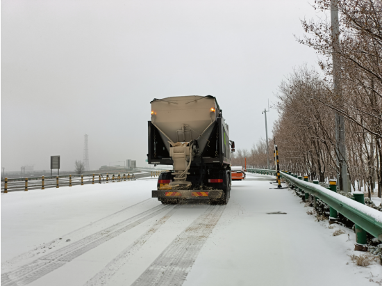 自21日至23日,沿海高速全線普降大雪,我分公司充分分析惡劣天氣情況預警,圍繞“早準備、早部署、早介入”的工作目標,圓滿完成了除雪保暢任務。一是提前啟動應急預案,開展了融雪劑清點裝車、設備提前試車熱車、重點路段先期撒布等工作。二是充分發揮運營單位與高速交警的聯勤協作機製。與高巡密切配合,不但交叉錯時巡邏、信息共享,而且為了提高除雪撒布的高效和安全,除雪作業由警車前方開道,養護車輛後方預警,真正實現了快速反應、高效處治的目標。截止23日,共計消耗融雪劑45噸,出動警車10台次、巡查車12台次、養護預警車8台次、除雪車8台次、作業人員36人次。除雪保暢期間,未發生交通事故,未出現車輛故障情況,最大限度地保障了行車安全。