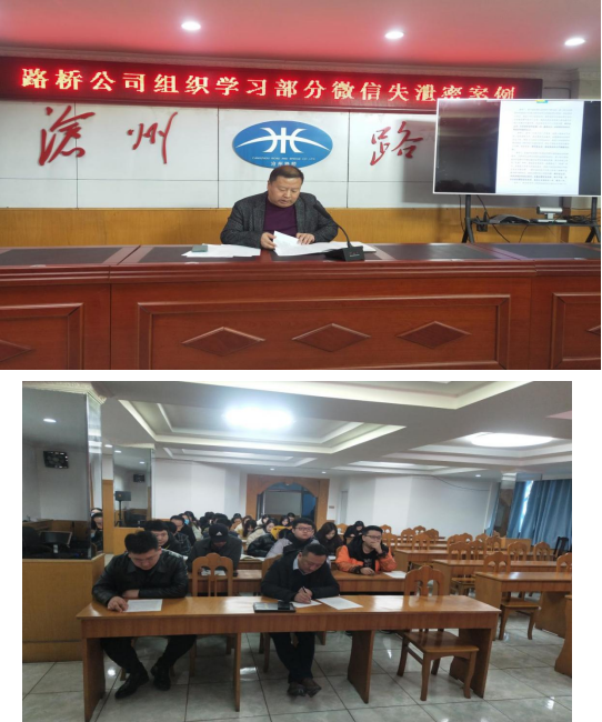 2月23日上午,滄州路橋工程有限責任公司為貫徹落實市委保密委員會辦公室、市(shi)國(guo)家(jia)保(bao)密(mi)局(ju)關(guan)於(yu)加(jia)強(qiang)涉(she)密(mi)文(wen)件(jian)保(bao)密(mi)管(guan)理(li),學(xue)習(xi)部(bu)分(fen)微(wei)信(xin)失(shi)泄(xie)密(mi)案(an)例(li)情(qing)況(kuang)的(de)相(xiang)關(guan)通(tong)知(zhi),健(jian)全(quan)完(wan)善(shan)公(gong)司(si)保(bao)密(mi)工(gong)作(zuo)製(zhi)度(du)和(he)個(ge)人(ren)保(bao)密(mi)承(cheng)諾(nuo)製(zhi)度(du),加(jia)強(qiang)並(bing)規(gui)範(fan)公(gong)司(si)涉(she)密(mi)文(wen)件(jian)保(bao)密(mi)管(guan)理(li),組(zu)織(zhi)全(quan)體(ti)員(yuan)工(gong)進(jin)行(xing)微(wei)信(xin)失(shi)泄(xie)密(mi)案(an)例(li)的(de)相(xiang)關(guan)學(xue)習(xi)。