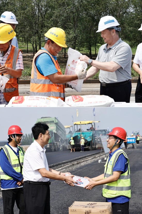 慰wei問wen組zu先xian後hou到dao榮rong烏wu高gao速su改gai擴kuo建jian一yi分fen部bu和he曲qu港gang八ba標biao段duan施shi工gong現xian場chang,詳xiang細xi了le解jie工gong程cheng進jin度du和he勞lao動dong競jing賽sai開kai展zhan情qing況kuang,看kan望wang慰wei問wen一yi線xian幹gan部bu職zhi工gong,並bing送song來lai礦kuang泉quan水shui、方便麵、火腿腸、大米、麵粉、食(shi)用(yong)油(you)等(deng)慰(wei)問(wen)品(pin),給(gei)基(ji)層(ceng)一(yi)線(xian)幹(gan)部(bu)職(zhi)工(gong)帶(dai)來(lai)了(le)河(he)北(bei)省(sheng)交(jiao)通(tong)運(yun)輸(shu)工(gong)會(hui)的(de)關(guan)心(xin)和(he)關(guan)愛(ai)。慰(wei)問(wen)組(zu)對(dui)滄(cang)州(zhou)交(jiao)發(fa)集(ji)團(tuan)一(yi)線(xian)職(zhi)工(gong)認(ren)真(zhen)履(lv)職(zhi)盡(jin)責(ze),勇(yong)於(yu)擔(dan)當(dang)作(zuo)為(wei)給(gei)予(yu)充(chong)分(fen)肯(ken)定(ding),對(dui)項(xiang)目(mu)工(gong)程(cheng)進(jin)度(du)給(gei)予(yu)高(gao)度(du)認(ren)可(ke),並(bing)叮(ding)囑(zhu)在(zai)作(zuo)業(ye)場(chang)所(suo)要(yao)按(an)規(gui)定(ding)配(pei)備(bei)職(zhi)業(ye)防(fang)護(hu)設(she)施(shi),在(zai)做(zuo)好(hao)職(zhi)工(gong)安(an)全(quan)防(fang)護(hu)的(de)同(tong)時(shi)做(zuo)好(hao)後(hou)勤(qin)保(bao)障(zhang),落(luo)實(shi)好(hao)防(fang)暑(shu)降(jiang)溫(wen)、飲食衛生、安全生產等工作,鼓勵職工繼續發揚勞模精神、勞動精神、工匠精神,積極投身項目建設。