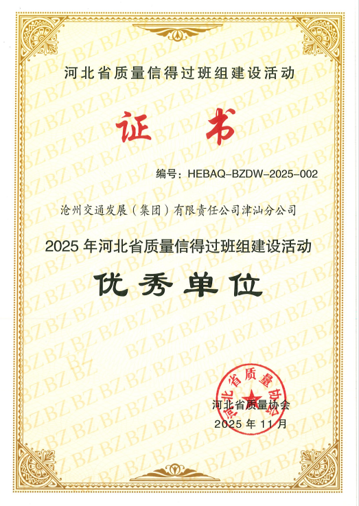 近日,津汕分公司在河北省交通運輸行業質量管理評選中脫穎而出,同時榮獲“2025年度質量管理小組活動優秀單位”與“質量信得過班組建設優秀單位”兩項省級榮譽,標誌著公司在精細化運營和智慧養護方麵的卓越成效獲得權威認可。